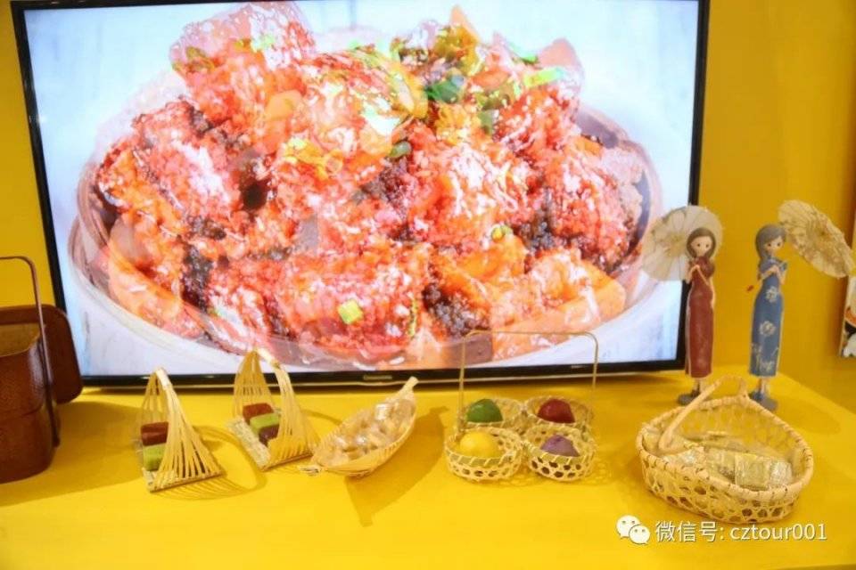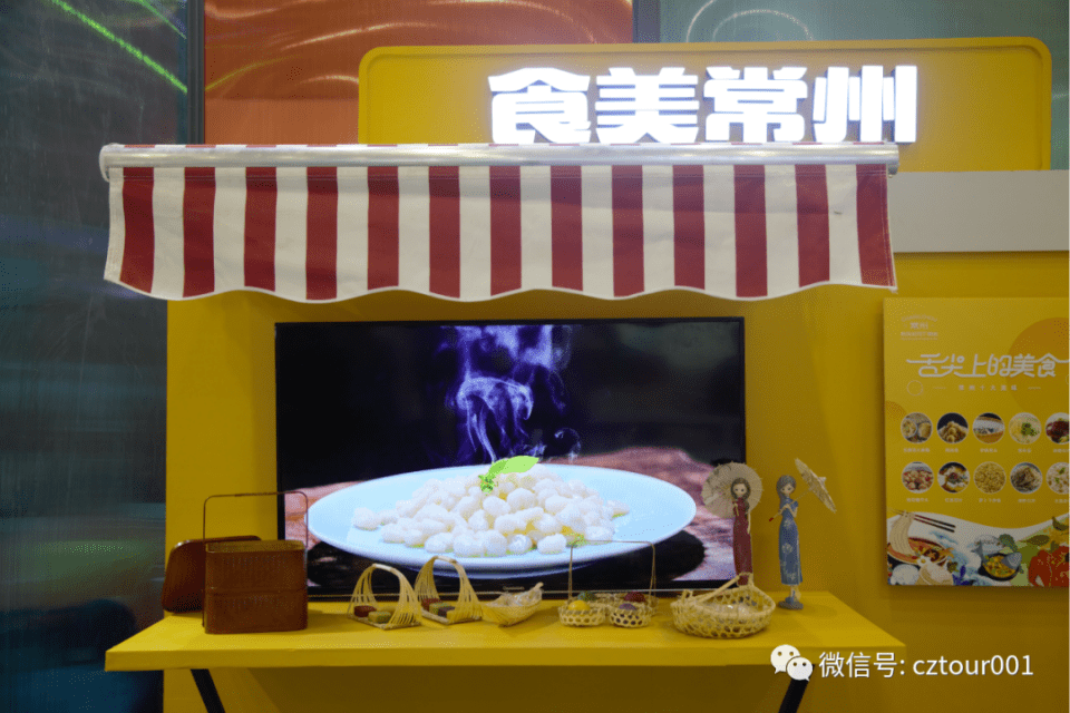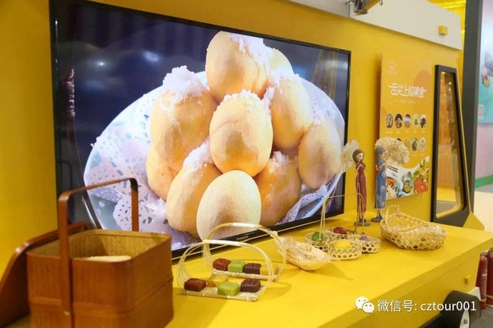 展厅一侧,创意十足的黄色餐车造型尤为引人关注,展示了常州十大美味(豆腐汤糕、网油卷、砂锅鱼头、银丝面、香糟扣肉、桂花糖芋头、红汤百叶、萝卜干炒饭、清炒白芹、水晶虾仁)并循环播放常州美食系列宣传片,逛场馆的同时亦能感受常州美食的无限魅力。