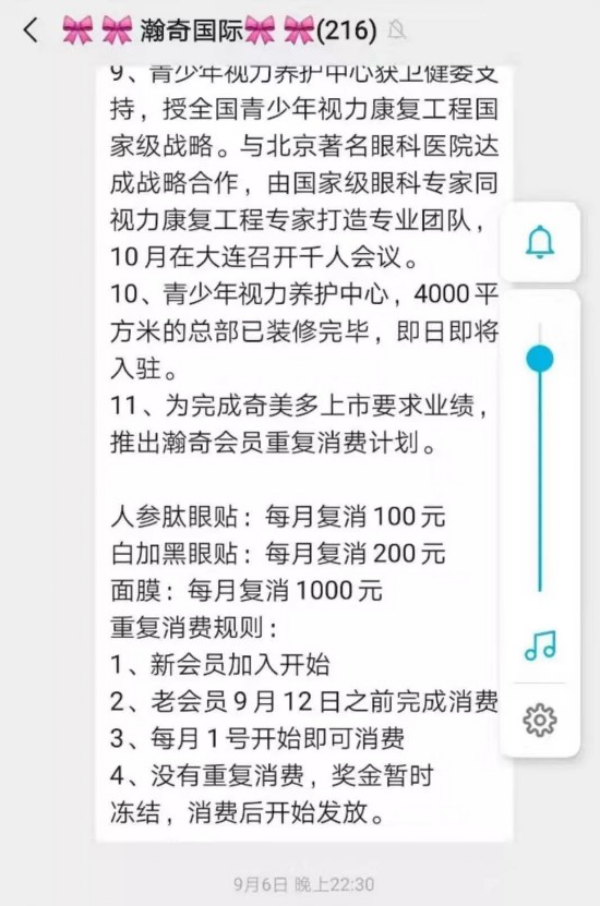 宣传资料显示,瀚奇科技的线下连锁店指的是“裕民堂”青少年视力养护中心。不过,根据环渤海新闻网今年7月的报道,唐山裕民堂青少年视力养护中心可能存在虚假宣传等问题。环渤海新闻网称,这家机构宣称采用不打针、不吃药、不手术的中药疗法,就能够在短期内让孩子恢复视力、摘掉眼镜。唐山市民张先生与这家店签约,交了13000元,店里承诺,视力可恢复到1.0,可摘掉眼镜,但现在已经治疗30多次了,孩子的视力并没有达到预期。