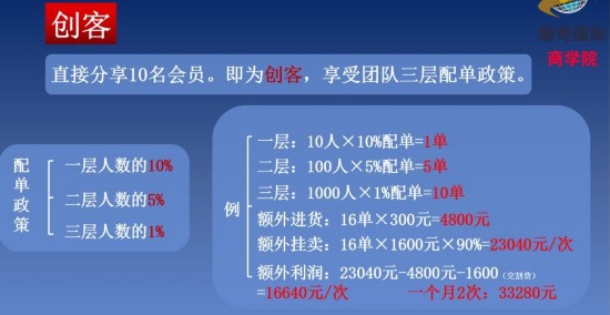 10月23日,奇美多又说转做“日照大商”项目,据称是与山东日照大宗商品市场合作。在会员提供的一份关于该项目的宣传资料中,该项目的“经营模式”同样表现出了疑似“拉人头”、“团体计酬”特征。会员上面的级别是创客、董事,董事级别还分为一星至五星董事。会员“分享”10名会员,可成为创客。创客享受三层配单,即一层人数的10%、二层人数的5%、三层人数的1%。