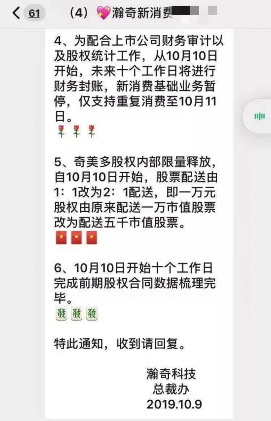 12月11日,奇美多发布公告称:“个别机构及个人散布关于我司的不实信息并引导公众舆论,恶意诽谤、诋毁及抹黑我司,已经对我司造成严重不良影响。”