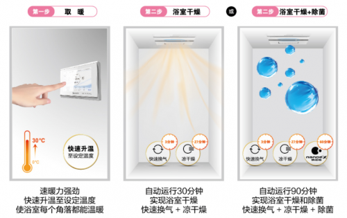 所有的产品都是为了生活方便而设计的,而随着技术的发展,物联网技术、智能家居产品也在我们生活中随处可见,松下的纳诺怡系列浴霸中的54BA浴霸就可以在手机APP上一键开启,远程操作各种功能。