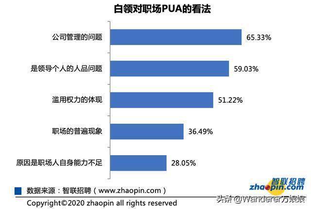数据发现,大部分白领认为“职场PUA”是公司管理问题、领导人品问题,而不是把自己当成是受害者来看待。