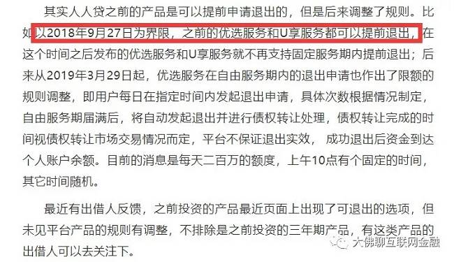 这边跟的比较紧的读者很多人在2018年的时候就已经选择退出平台,然后逐渐远离匹凸匹这个的行业了,一小部分晚一点的去年也差不多都退了出来,到今年前半年,一批新关注的读者还可以把早前的人人优选和U享转让出去,也就是今年过了锁定期的长期标,还是可以提前申请退出来,但是在去年和今年还在复投或是才进入平台的用户,信息的屏障才是真的可怕。