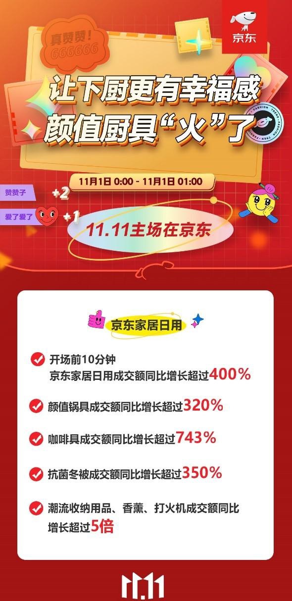 11月1日,京东居家在11.11全球热爱季中迎来开门红,开场前10分钟成交额同比增长超300%,其中家居日用品类成交额同比增长超过4倍,不少消费者趁此机会大焕新,享受精致美好生活。