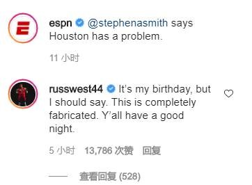 名嘴称威登不想跟彼此打球 威少回复:这消息是编的2020-11-13 20:28:57 Instagram11月13日讯名嘴史蒂芬-A-史密斯在《First Take