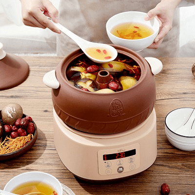 这款电气锅采用塔吉式的循环蒸馏烹饪,不加一滴水,蒸出来的汽锅鸡不仅鲜少油腻,而且还有着双倍的鲜香!盛一碗热汤,趁热咕嘟咕嘟喝下,养生成就达成!