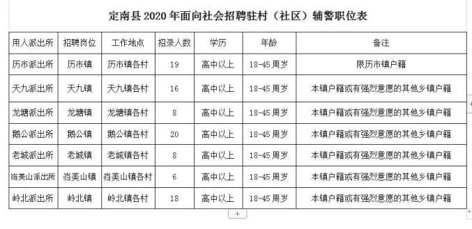 为全面完成“一村一辅警”建设,提升基层治安防范能力和服务群众工作水平,经县委、县政府同意,定南县公安局面向社会公开招聘驻村(社区)辅警95名(限男性)。