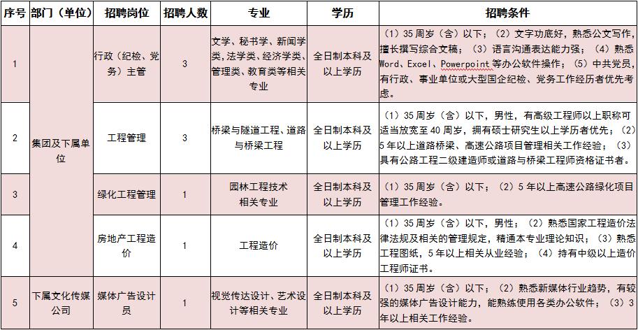 1.年龄35周岁以内,中共党员,人力资源管理、企业管理、工商管理、行政管理、劳动与社会保障管理、公共关系管理等相关专业毕业;