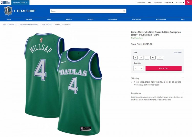 11月14日讯今日早些时候,有记者发现自由球员保罗-米尔萨普的独行侠球衣在澳洲版NBA网上商店上架。