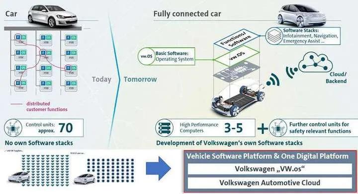 技术路线没有问题,问题在于大众太过激进了,他们低估了研发全新电子电气架构的难度,高估了自己的软件开发能力。