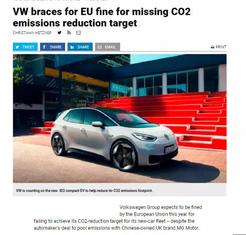 为了躲避数以十亿欧元计的巨额罚款,大众集团原计划在2020年售出10万辆大众ID.3和7万辆奥迪e-tron电动汽车,因此才在软件开发未达预期的情况下,坚持继续生产ID.3。