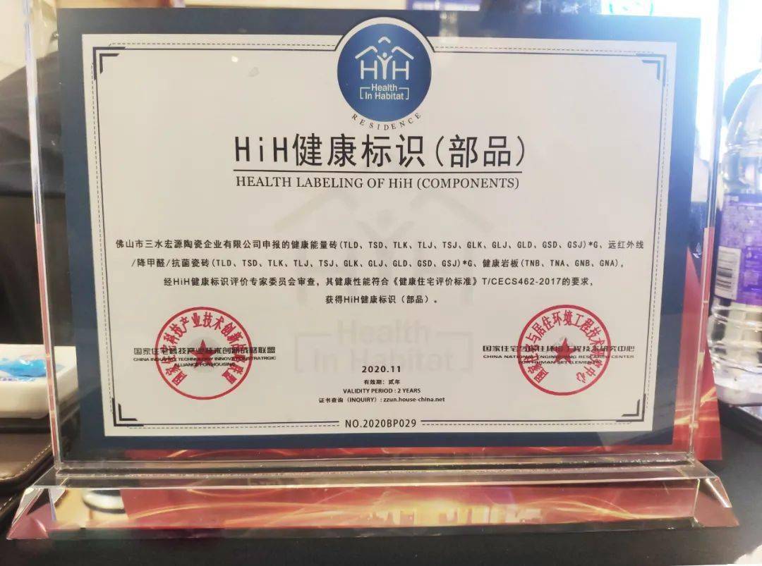 在11月12日上午的会议上,举行了隆重的“HiH健康标识”颁牌仪式。经HiH健康标识评价专家委员会审查,高德·健康能量砖的发明专利技术与健康性能符合健康住宅评价标准的要求,被授予“HiH健康标识(部品)”证书,这也是陶瓷行业获得的首个“HiH健康标识”证书。同获证书的还有方太厨具、绿地控股、远洋集团、中冶置业、北京中筑置业、阳光城集团等知名企业。