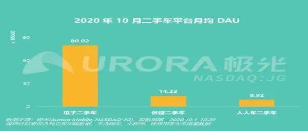 在日活跃用户数、新增用户数等方面,瓜子二手车持续领跑行业,用户规模及用户粘性长期保持领先。极光iAPP数据显示,在10月二手车平台月均DAU统计中,瓜子已占到二手车行业互联网流量总量的八成;10月8日,瓜子二手车APP日活跃用户数是第二名的5.8倍、第三名的9.4倍,新增用户数是第二名的5.9倍、第三名的8.7倍。这意味着二手车行业的新增互联网用户及活跃用户正在加速向瓜子二手车集中,二手车行业互联网流量的“八二格局”已经形成。