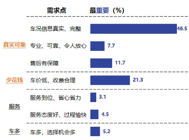全球知名研究机构Ipsos(益普索)2019年的调研报告显示,目前,我国二手车交易正由价格敏感型向品质敏感型转变,有65.9%的用户表示,他们最在乎的是车况质量和售后保障。