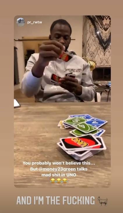 11月15日讯今日,追梦的朋友在Instagram上晒出了追梦玩UNO牌的片段,并表示:“你们可能不相信,但是追梦玩UNO的时候也在喷垃圾话。