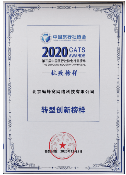 11月5日,中国旅行社协会行业榜单发布仪式在敦煌举办,马蜂窝旅游获选“中国旅行社协会2020行业榜单抗疫专题榜单”。据了解,该榜单根据我国旅行社企业和从业者在抗击新冠肺炎疫情中所作出的积极贡献进行评审,表彰在疫情期间旅行社行业涌现的优秀代表。