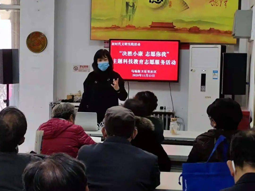 为更好关爱社区老年人身体健康,进一步普及老年人健康保健知识,近日,马场街卫星里社区通过新时代文明实践中心信息平台进行志愿服务项目点单,邀请到河北区望海楼社区科技志愿服务队志愿者在社区中开展“决胜小康 志愿你我”主题科技教育志愿活动——“老年人营养健康”讲座。