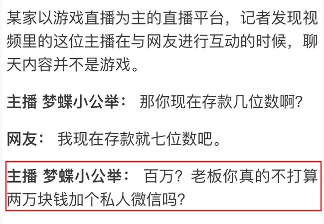 前不久“南都大数据研究院”通过微博数据统计的网友相关评论中,网友投诉低俗主播中,梦蝶小公举在用户提及的诉求排在第二名。