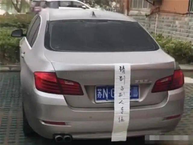 车位的业主想了半天,决定让这辆宝马在这里停一晚,他心想说不定这辆车的主人临时有急事。但事情的发展出乎了业主的预料,这辆宝马在这里停了足足半个多月一直没人开,三番五次打电话仍被拒接。他顿时忍不下去了,就回到家里拿出了文房四宝准备给这辆宝马车贴一幅“作品”。我们可以从图片中看到这辆宝马车的汽车尾部被人贴了一张白纸,上面写着请别占别人车位,值得一提的是,这张白纸还是一张卫生纸。