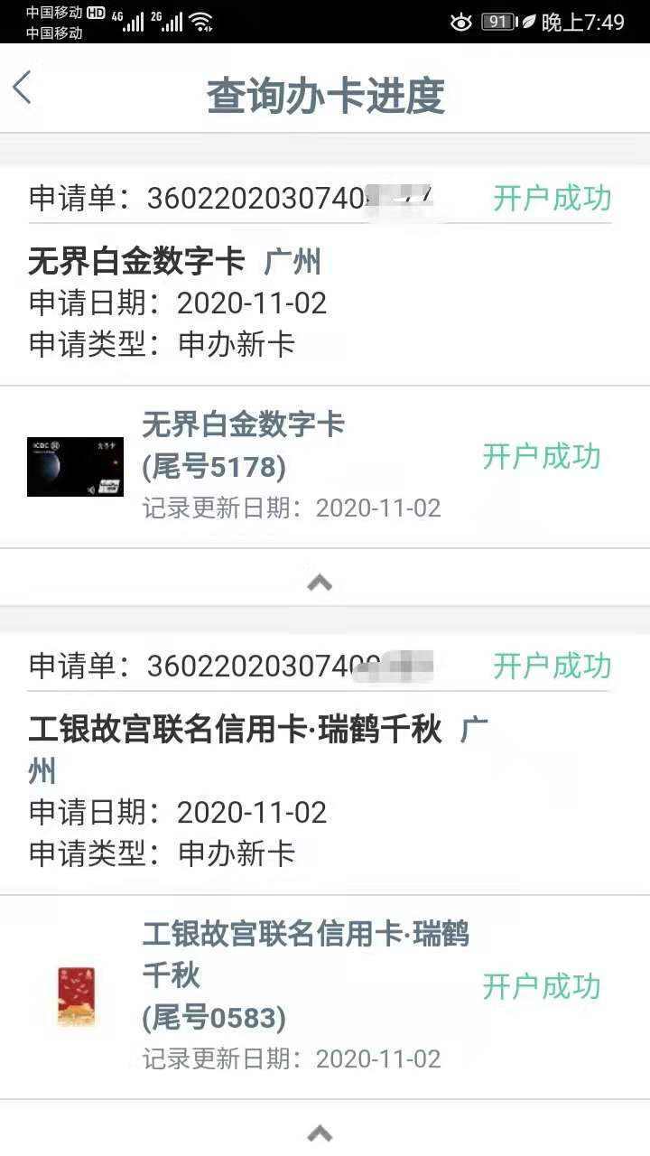 这个卡友我教他的申请方法,11-2申请,11-3更新已受理,11-4停更,11-6再次更新!晚上提示开户成功! 但网银更新日期还是11-3。他跟我说,很奇怪的是从头到尾都没有一条短信!连收到资料的短信都没有!也没有任何征信电话!机器猫都不来一个!今天晚6点看的时候还是申请已受理,吃完饭再看的时候已经开户成功!然鹅还是没有短信!五万额度。