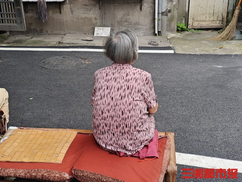 “快来坐,给你扇扇风。”三湘都市报记者走进小巷,树荫下一位满脸堆着笑的老人就热情地招呼出声,笑容可掬,皱纹温柔蜿蜒。有着树荫庇护,上午10点的高温显得不那么强势。
