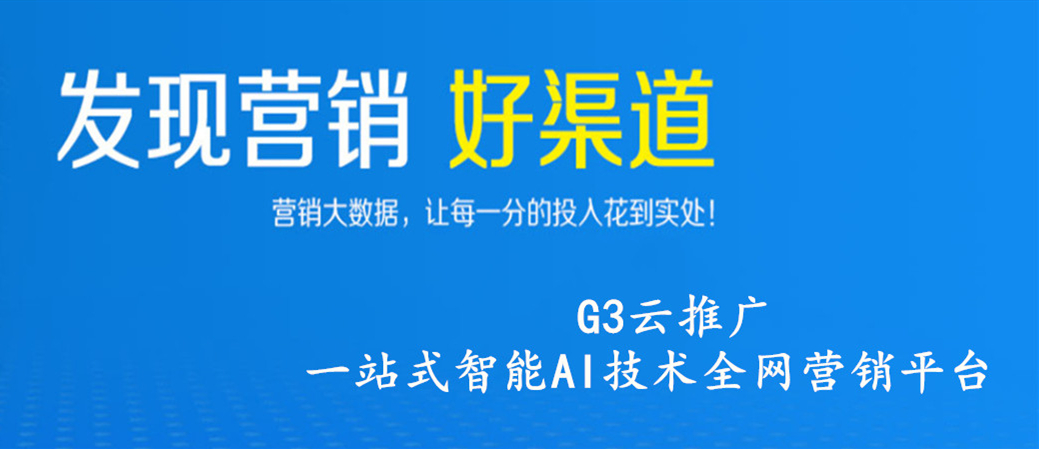 公司专注于互联网+全网营销服务。公司专注于互联网+全网营销服务。G3云推广全网营销平台开创了PC互联网与移动互联网双模整合网络营销时代 全网营销从字面意思来理解。G3云推广全网营销平台开创了PC互联网与移动互联网双模整合网络营销时代。