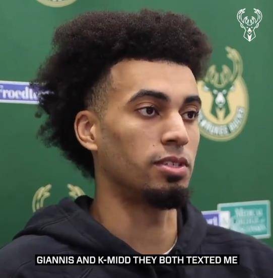 11月25日讯雄鹿新秀乔丹-诺瓦在采访中透露选秀夜当家球星字母哥以及米德尔顿都给自己发了短信。