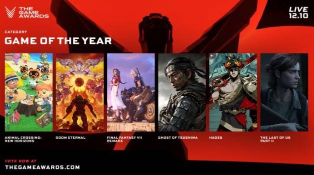 分别是:《集合啦!动物森友会》《毁灭战士:永恒》《最终幻想 7 重制版》《对马岛之魂》《黑帝斯》《最后生还者 第二部》