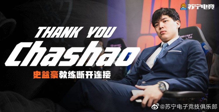 SN.Chashao 断开连接,史益豪(ID:Chashao)卸任苏宁英雄联盟分部主教练。