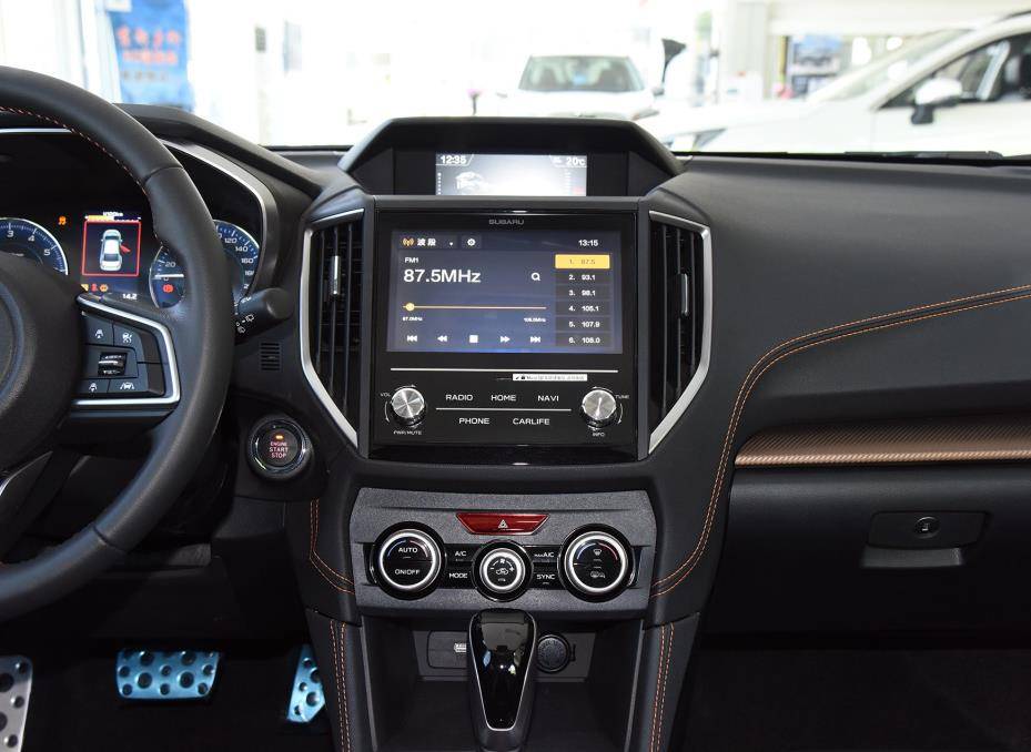 空调出风口处均采用银色镀铬饰条点缀,而且在中控液晶屏幕的下方还设置有三个旋钮式的按键。配置方面,2020款斯巴鲁XV配备有三辐式多功能运动方向盘,前后排头部气帘,自动驻车,上坡辅助,倒车影像,胎压报警,电动天窗等等。2020款斯巴鲁XV的座椅以及方向盘均采用的是真皮材质包裹,而且座椅还支持加热功能和电动调节功能。