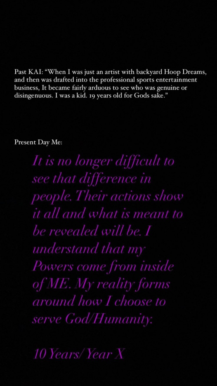 过去的欧文:“当时我是个有着从后院起源的篮球梦想的艺术家,我被选中进入到一个职业体育球队中,同时也进入到娱乐性的生意之中。那时对我来说很难去分辨,谁是真诚的,谁又是不真诚的,我那时只是个19岁的小孩子,看在上帝的份上。”