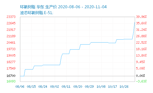 日前,受多家环氧树脂大厂爆炸停产的影响,环氧树脂价格在两天内暴涨超5000元/吨,由于市场供应紧张,环氧树脂价格涨势未减,11月4日,南通新辰液体环氧树脂E-51新单报价在21800元/吨,有业内人士称短期价格有望突破30000元/吨。