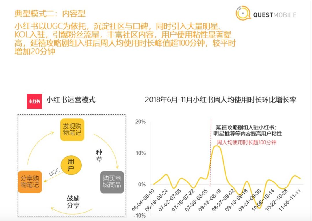 UGC前期很多时候是官方进行驱动,从而被动性的产出内容,而小红书的UGC更像是淘宝剩余的用户评价。UGC是内容增长的王者,这样高潮性的内容驱动来源于小红书社会价值的背书,小红书的创作内容点赞与关注人数量已经不再是围绕在产品内部,而是形成了跨越链条的达人效应。明星效应,价值效应,时代趋势,成为了小红书这个阶段的流量效应,想红的,想获取知识的,都在这里不断的碰撞。