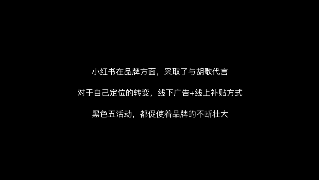 俗话称“有钱真好”,我们之前分析了很多的产品在增长端的发力,而品牌方面一直都是不错的增长渠道。小红书在品牌方面,采取了与胡歌代言,对于自己定位的转变,线下广告+线上补贴方式,黑色五活动,都促使着品牌的不断壮大。