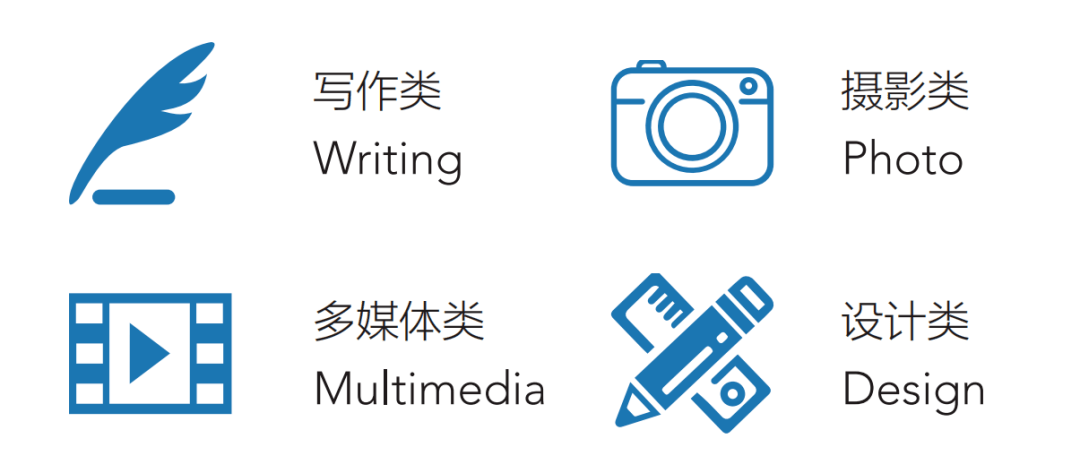 ✔ 适应学生面广。该赛事有四大类34类细分主题,选择多样,不管是想要申请人文社科方向还是理工商科方向的学生,都可以通过这个比赛展现自己的综合素质。一份优秀的写作类作品,可以反映作者清晰的表达能力与英语语言功底;一份优秀的摄影或视觉/设计类可以展现作者的艺术素养;而一份优秀的多媒体类作品更是作者理清思路和打造个人形象的得力工具。
