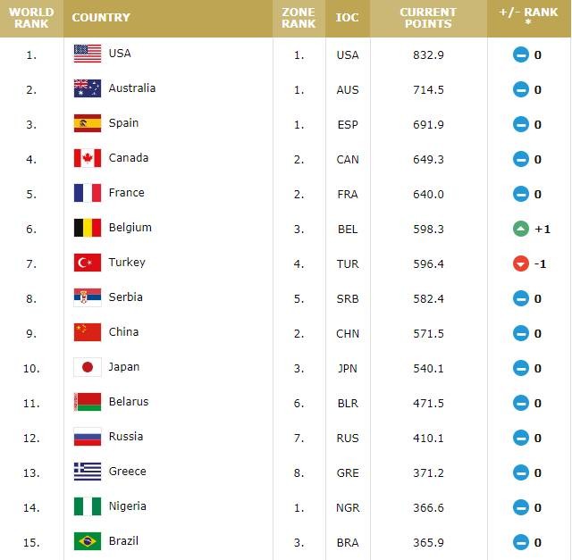 12月10日讯 今天,国际篮联公布了最新一期的女篮世界排名,中国女篮位居第9,。