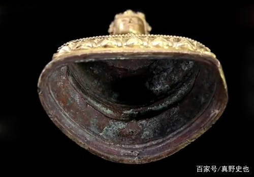此佛像高22厘米,宽13厘米,看外形不是特别的大,应该是供奉在桌子上的佛像。这尊佛像宝相类严,表情十分的肃穆,双手捧着一个宝瓶,座下是一个莲花座,莲花做的相当饱满。整体都是用黄金打造,而且用金量十足,所以专家说这是一个清朝无量寿佛的造像真品!
