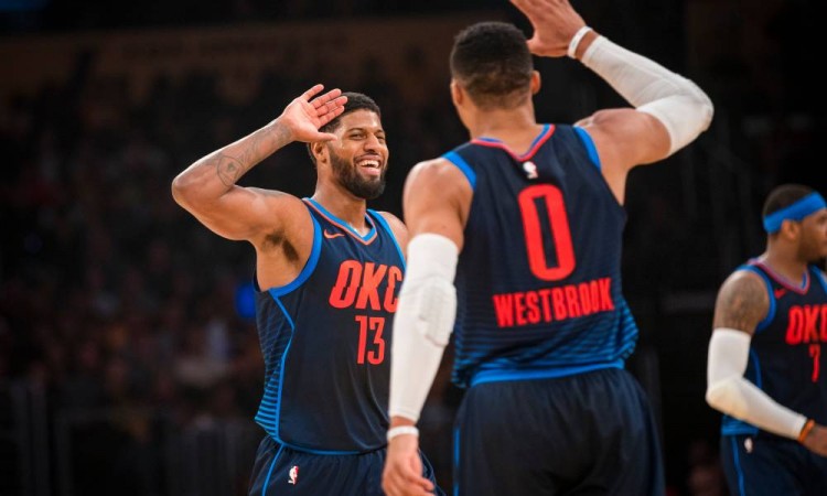 乔治表示和威少这种顽强而富有竞争力的家伙一起比赛,可以展现出自己最好的一面。他说道:“和威少作为队友的那个赛季是我目前职业生涯的最佳赛季。我可不关心人们对他指指点点,他每晚都不留余力,我可以和这么牛X的家伙一块打球会激励着我,让我每晚都打好比赛。”