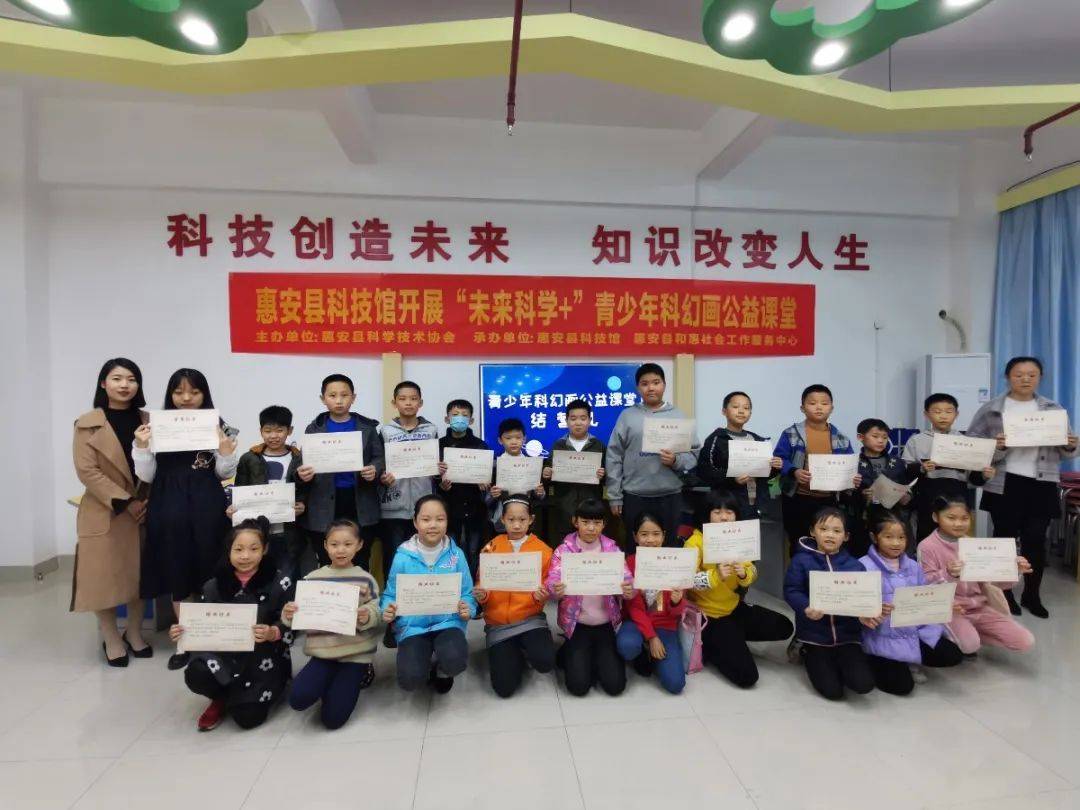 12月6日,由惠安县科学技术协会主办,惠安县科技馆、惠安县和惠社会工作服务中心承办的“未来科学+”青少年科幻画公益课结课仪式暨科幻画作品展在惠安县科技馆举行。