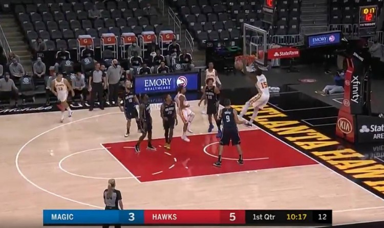 比赛首节,特雷-杨在挡拆后送出一记空接妙传,卡佩拉拍马赶到双手灌筐。