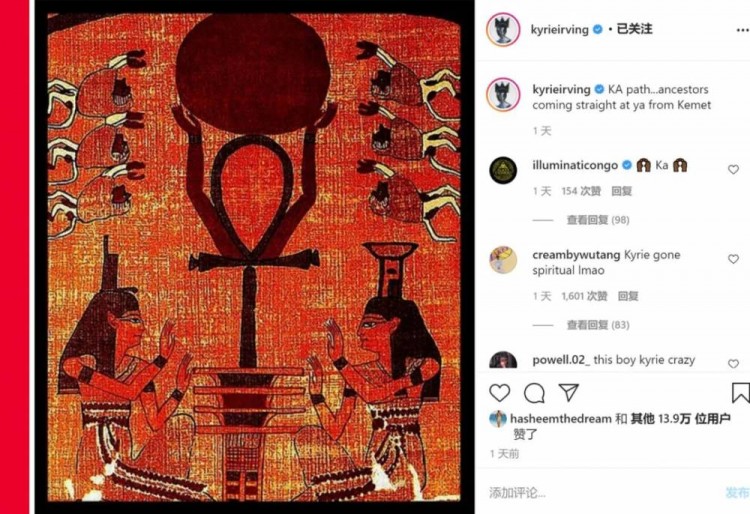 有一次,欧文晒出了一张基米特宗教的图画,这代表着古埃及人对宗教信仰的认知,由于原来的埃及人都是黑人,因此,希腊人将名字从基米特改为了埃及,意为“黑人的土地”。