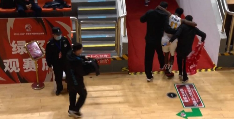 12月12日讯 CBA第二阶段常规赛今日继续进行,山西对阵北京的第三节,山西外援富兰克林被搀扶离场。