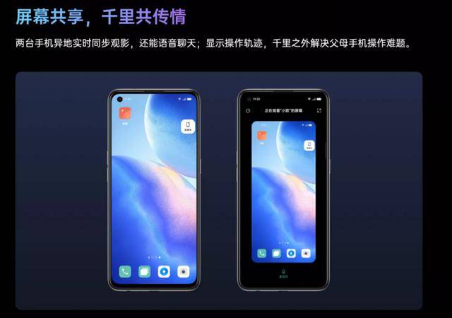 首先是屏幕共享,搭载 ColorOS 11 系统的 OPPO Reno5 系列支持两台手机异地实时同步观影,期间还可以进行语音聊天、显示操作轨迹等。