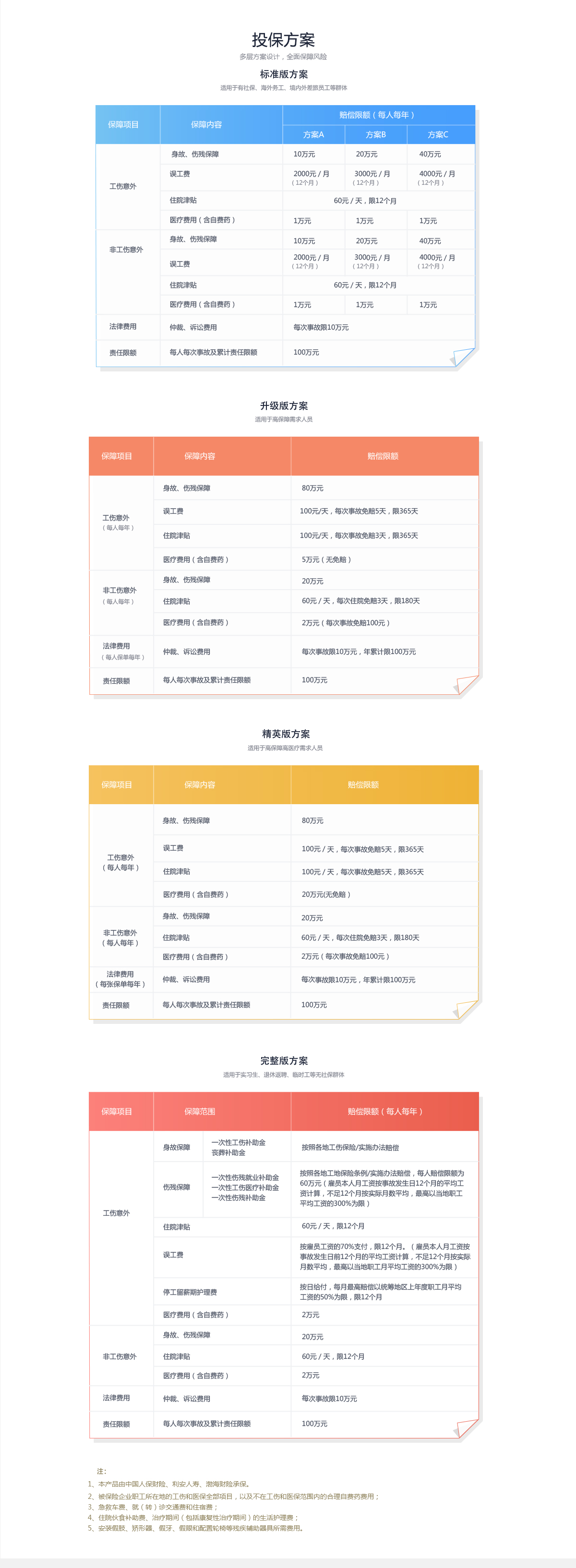 2020年3月11拿市面上常见的员工福利保险来说,其实大多是团体意外险或团体医疗险之类等等,与雇主责任险有着本质上的不同。 而且,只配置了团体意外险的话,除了保险会给予员工