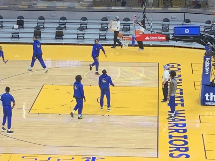 12月13日讯勇士稍后就将迎战掘金,双方球员目前已经在球场上热身。