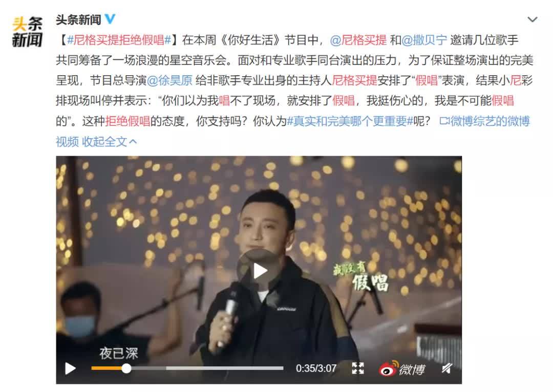 由于职业歌手与业余选手搭档,为了保证现场效果,总导演决定,用假唱来解决这个问题,来保证这一档节目的完美度。然而尼格买提直接在录制时跟总导演明确表示自己拒接用假唱。而这个片段,也大胆地被节目保留。节目播出后,#尼格买提遭遇假唱#、#真实和完美哪个更重要#随即登上的微博热议话题榜的第三位,引发了网友热议。