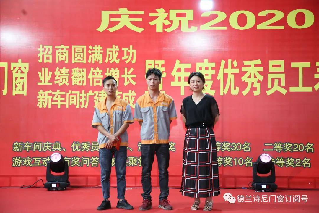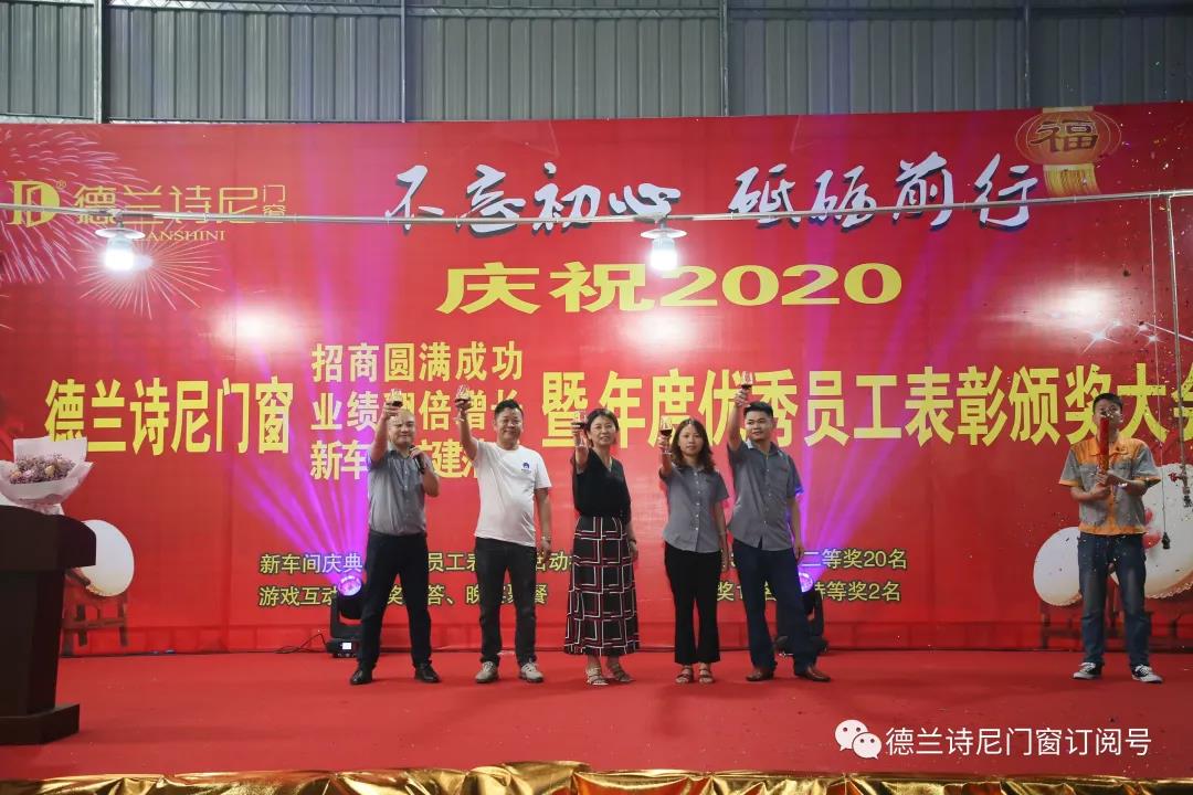 为庆贺公司佳绩、新车间落成,同时表彰贡献杰出、表现优秀的员工,7月31日公司举办盛大的庆典活动,下午3点正,高端铝合金门窗厂家德兰诗尼董事长王鹏飞、总经理王莹以及全厂同事齐聚在新车间内,随着一阵震耳欲聋的鞭炮声响起,主持人营销总监廖先华开场白,宣告大会正式开启。