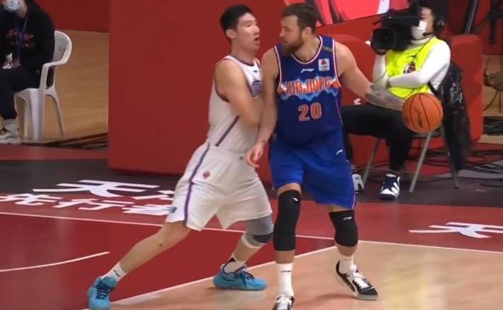 上半场新疆外援莫泰发挥出色,在周琦缺阵的情况下他独撑篮下,半场砍下16分17篮板的大号两双。
