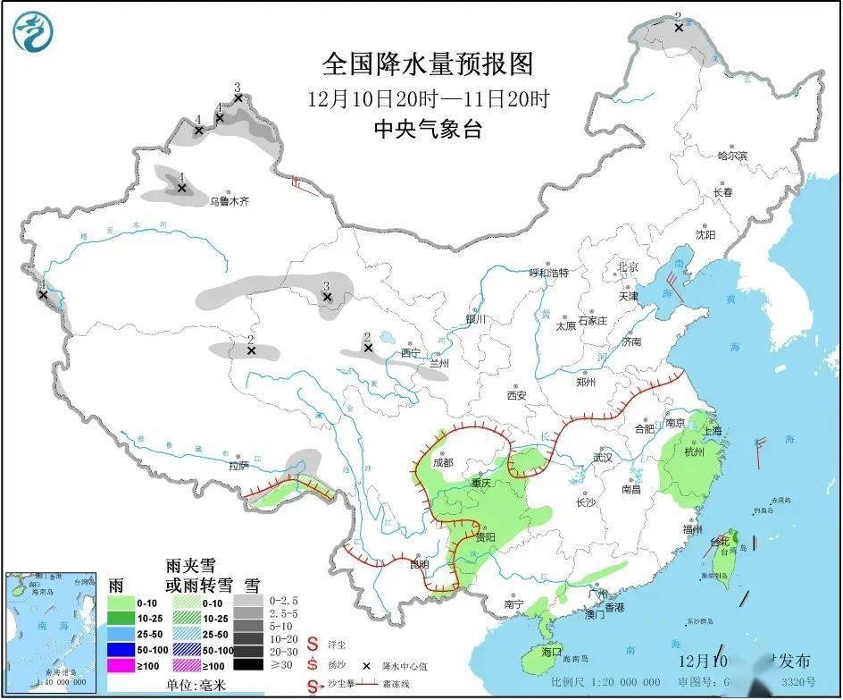 近日天气:内蒙古东北部、黑龙江西北部、新疆南疆盆地和北部、西藏东南部、青海东部和西部、甘肃河西等地部分地区有小雪或雨夹雪,其中,新疆北疆北部等地部分地区有中雪。