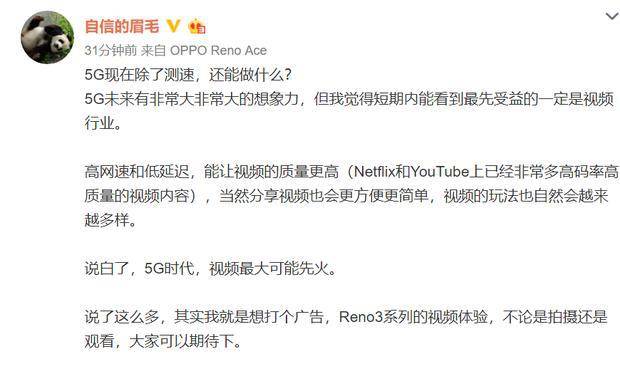 作为全球主要的手机厂商,OPPO的未来生态布局也经历了长时间的发展。在OPPO Reno2发布之时,OPPO就开始立足5G技术,布局未来生态,当时OPPO副总裁沈义人表示:5G时代带来的低延迟高速网络,将使得视频行业得到蓬勃发展,OPPO更加注重5G手机的应用场景。而在2019年12月,OPPO又正式发布了5G视频手机,Reno3系列。得益于5G更快的网速,以及OPPO技术人员对硬件技术与软件算法的完美结合,OPPO对于未来生态中的视频领域的布局获得了不少用户的认可,取得了一定的成效。